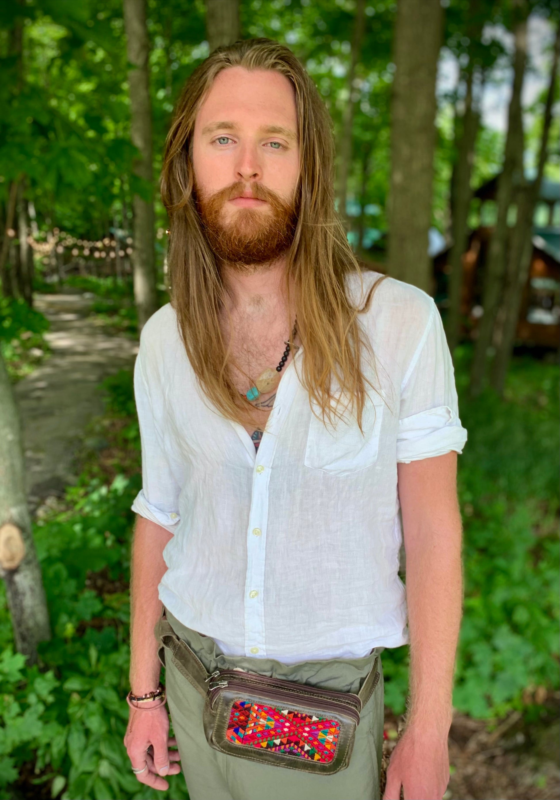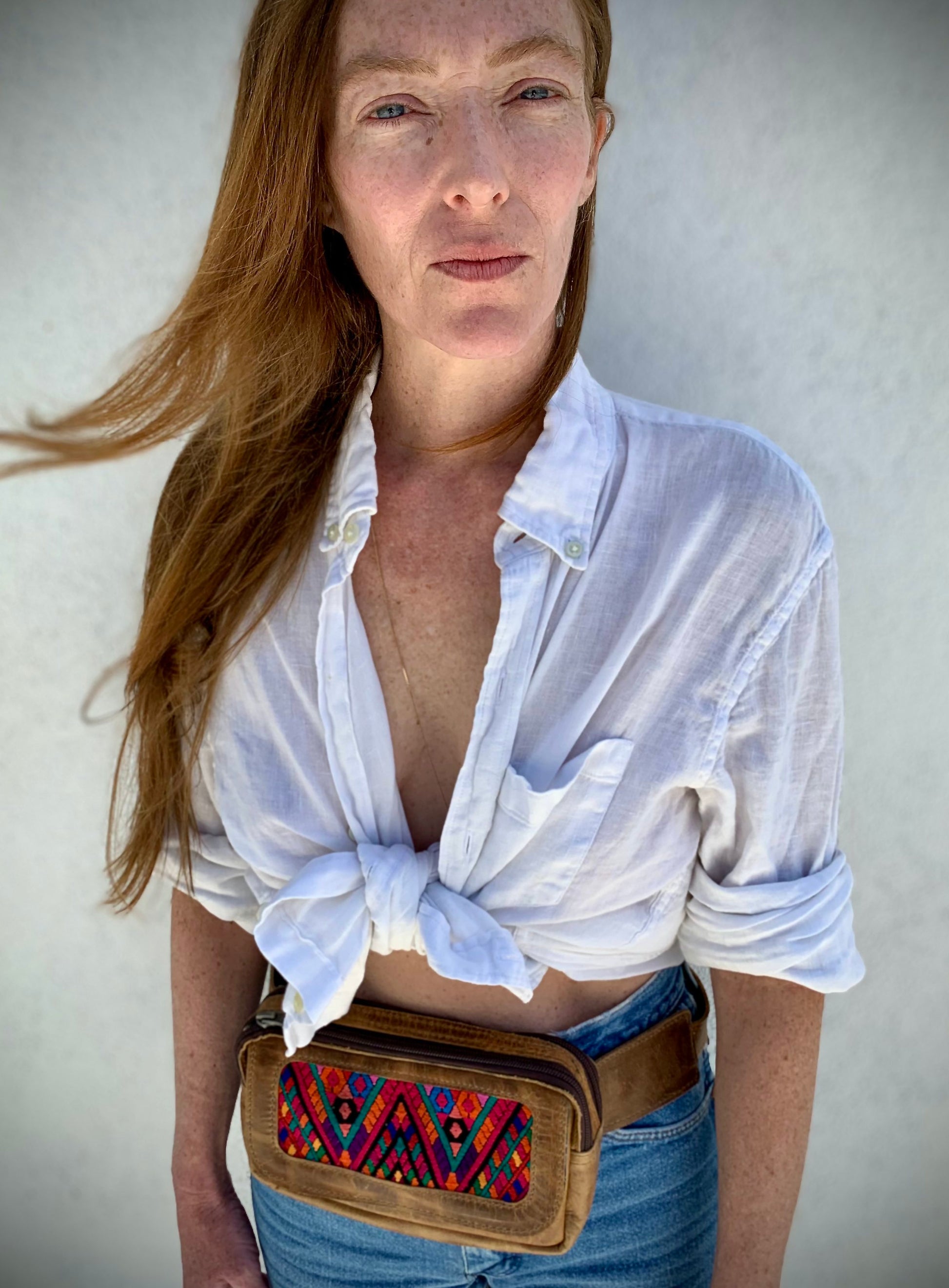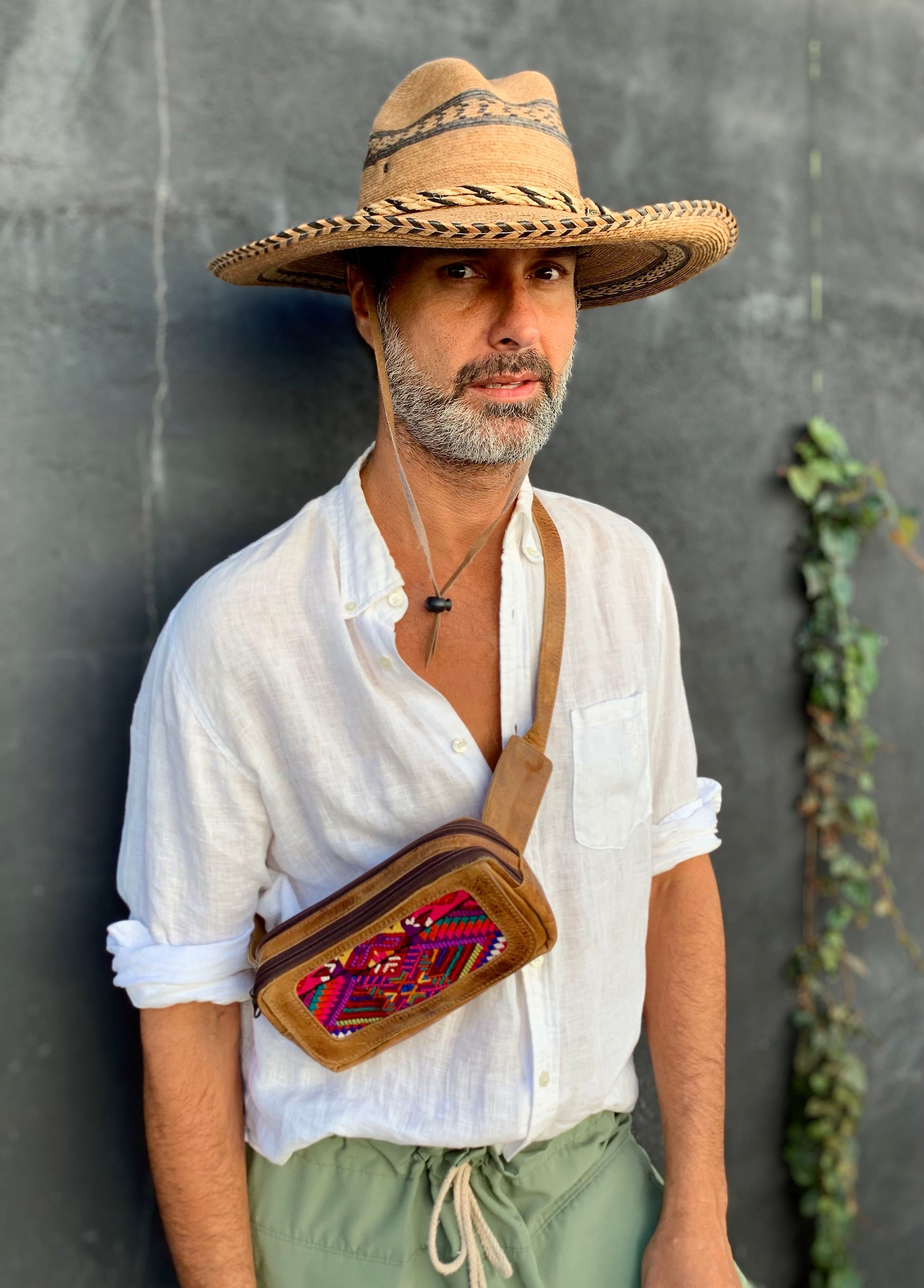 These bags are made in San Juan La Laguna by Manuela who is part of a women's coop who are survivors of domestic abuse. They are made from cow leather from a local farm and leftover pieces of huipil for the ornate embroidery. The soft full grain leather is made with environmentally friendly methods using the entire cow and sustainable tanning methods which only gets better with age.
