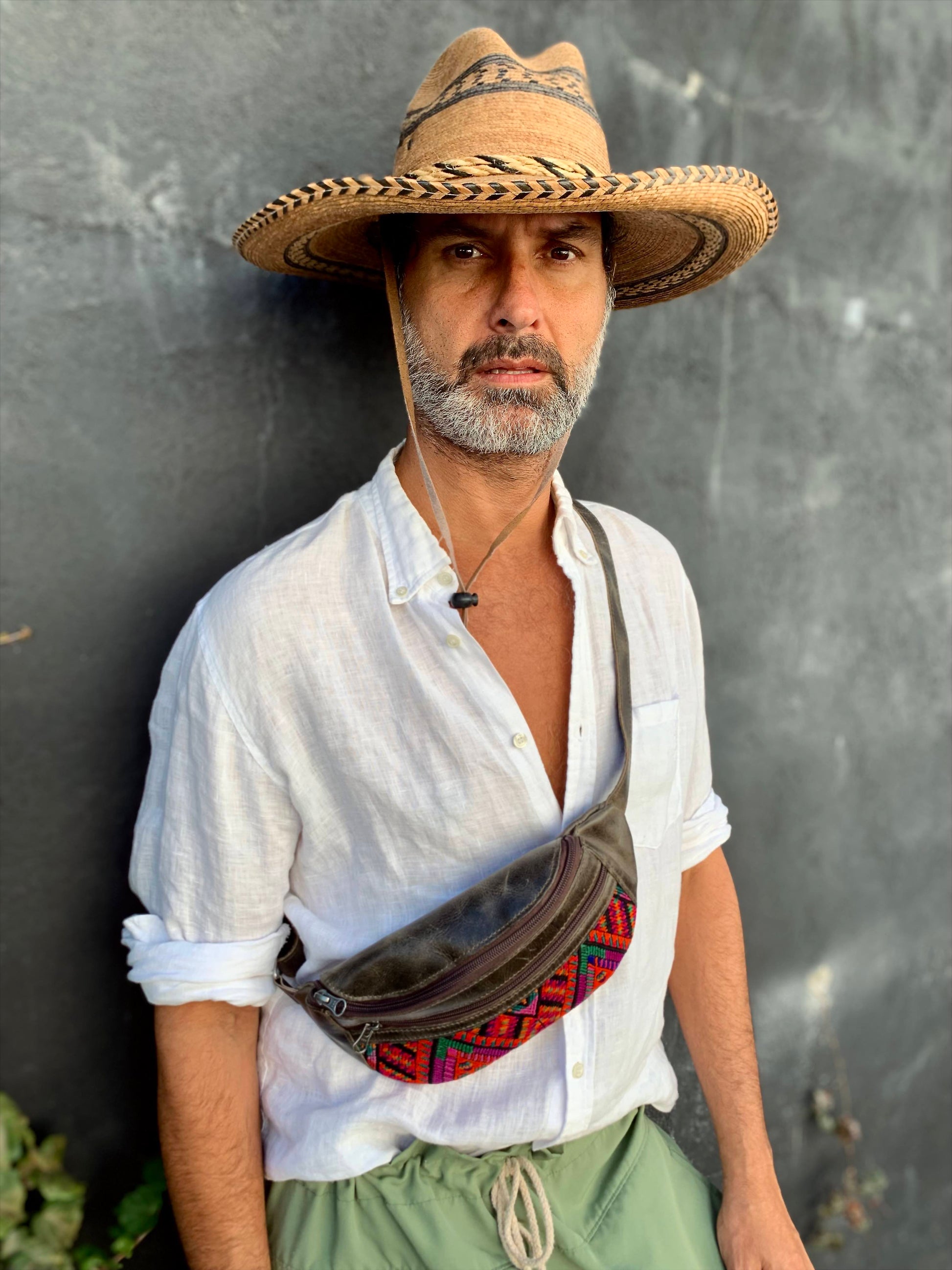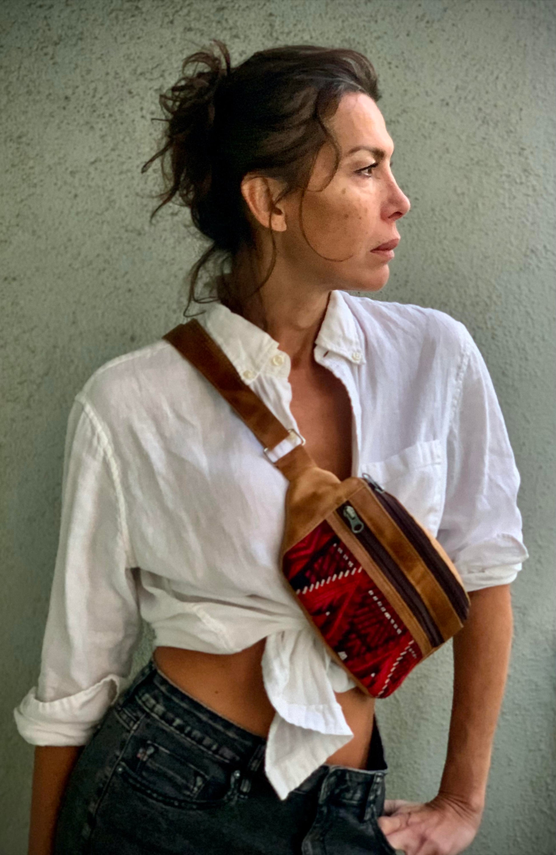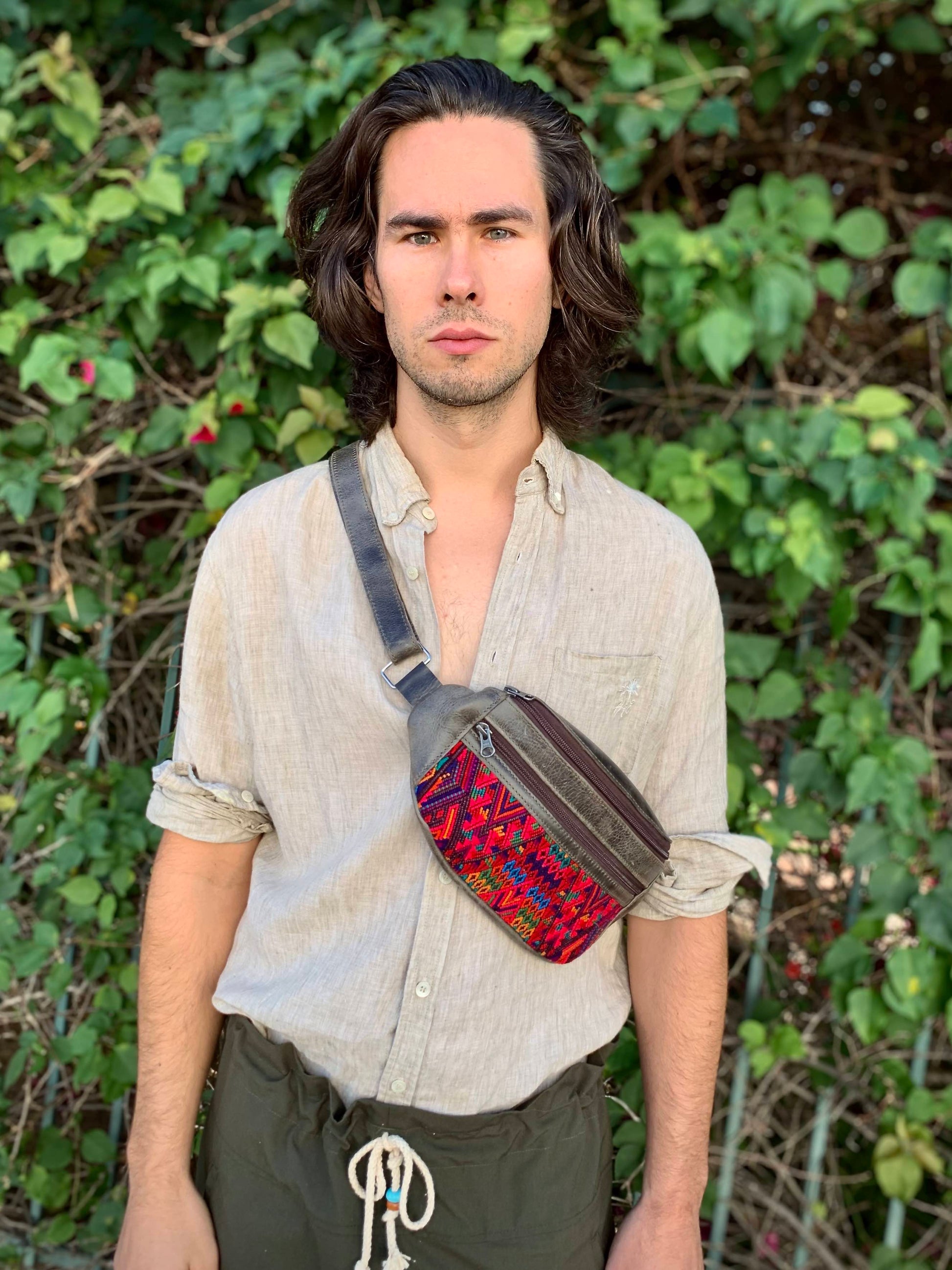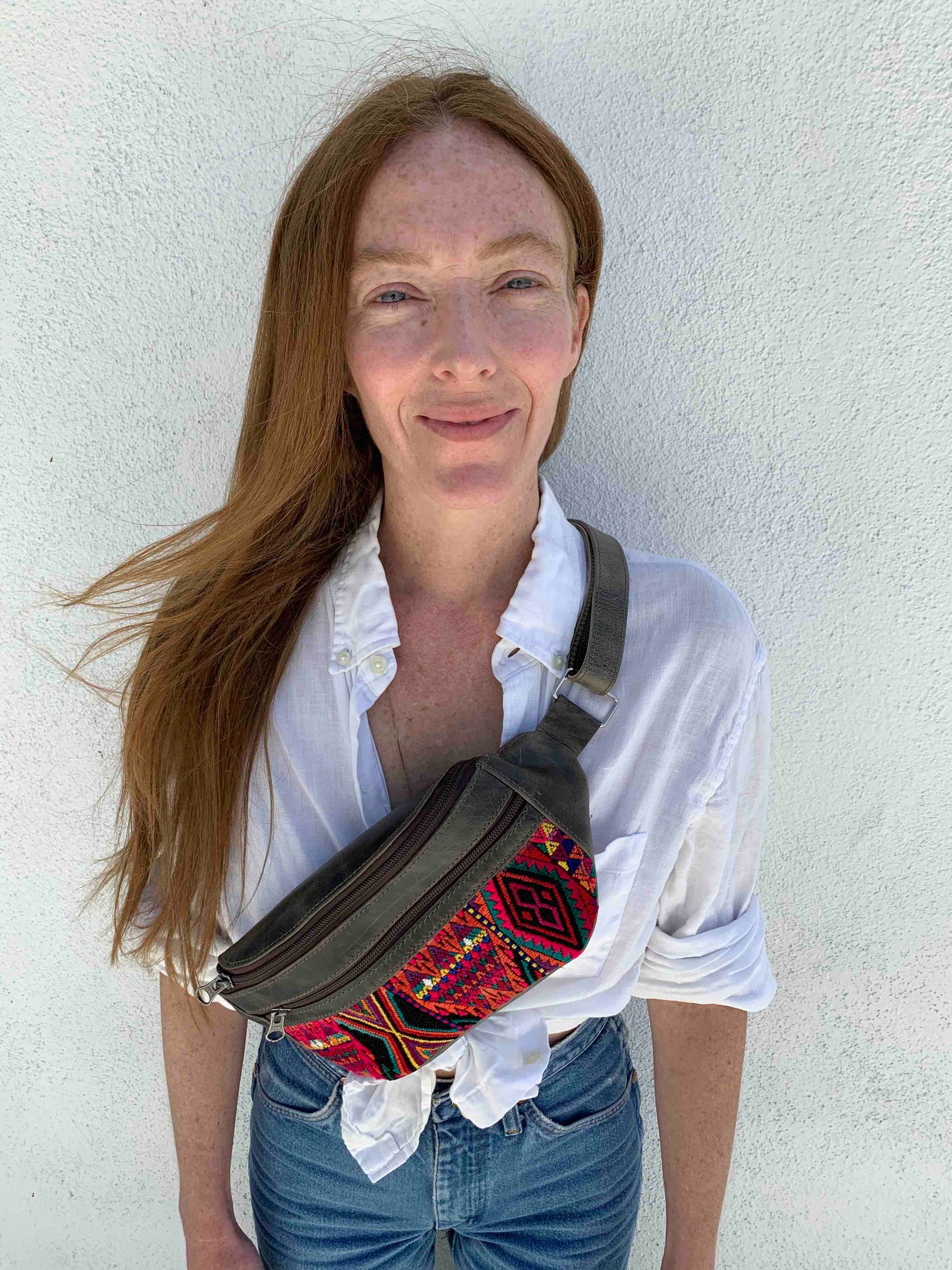 These bags are made in San Juan La Laguna by Manuela who is part of a women's coop who are survivors of domestic abuse. They are made from cow leather from a local farm and leftover pieces of huipil for the ornate embroidery. The soft full grain leather is made with environmentally friendly methods using the entire cow and sustainable tanning methods which only gets better with age.