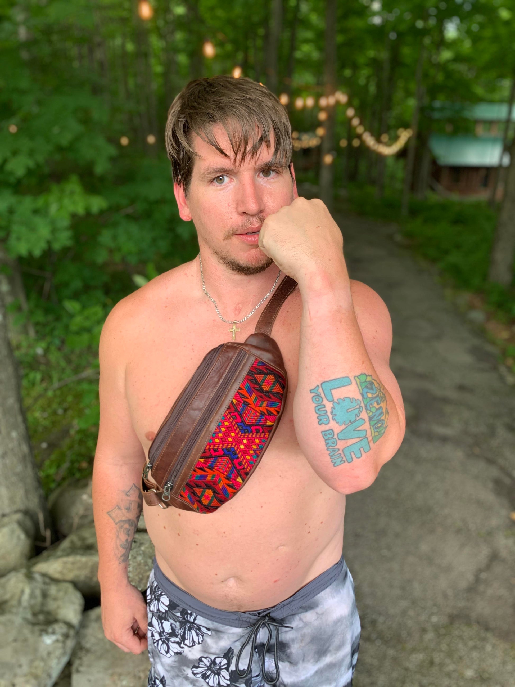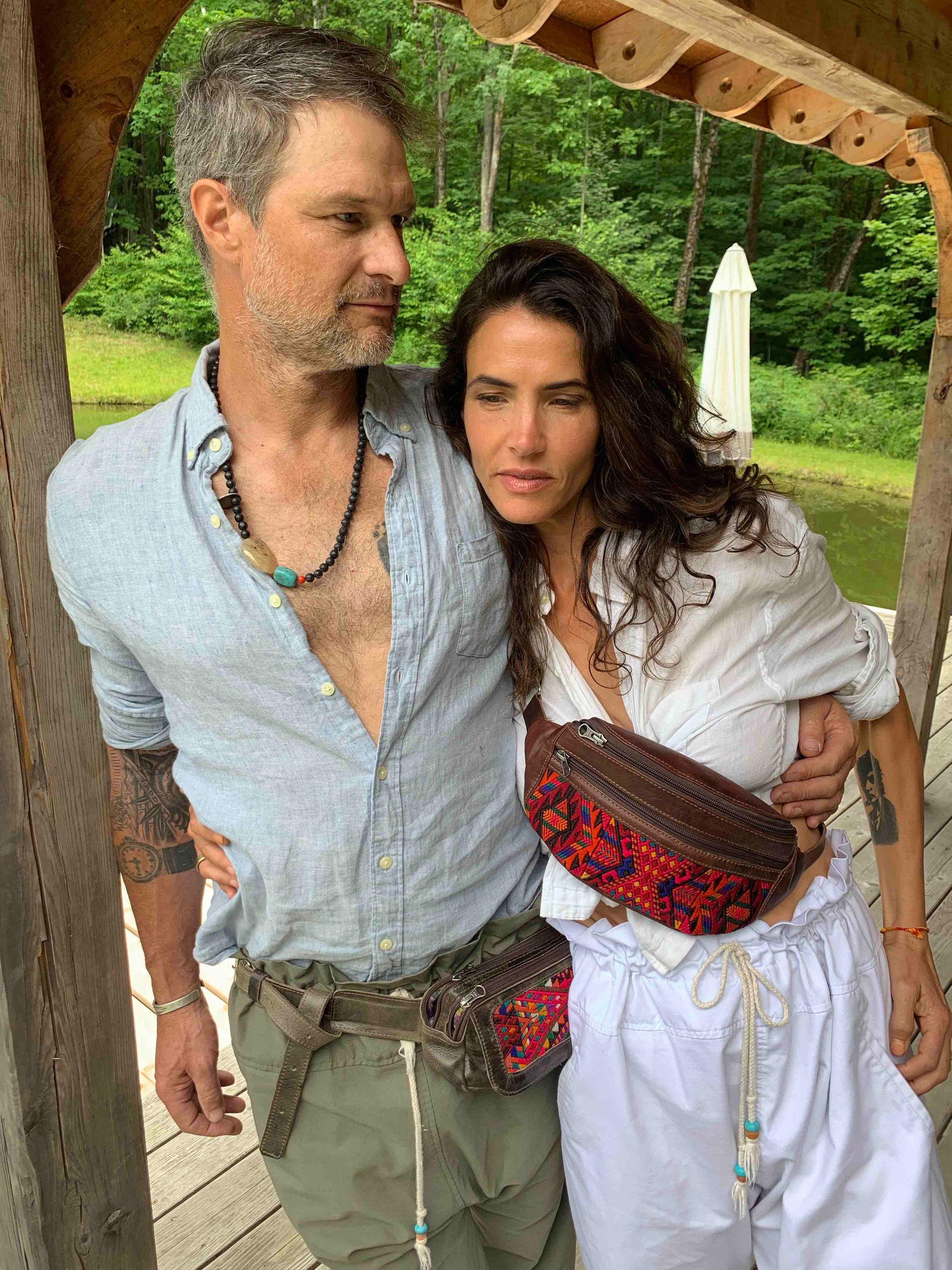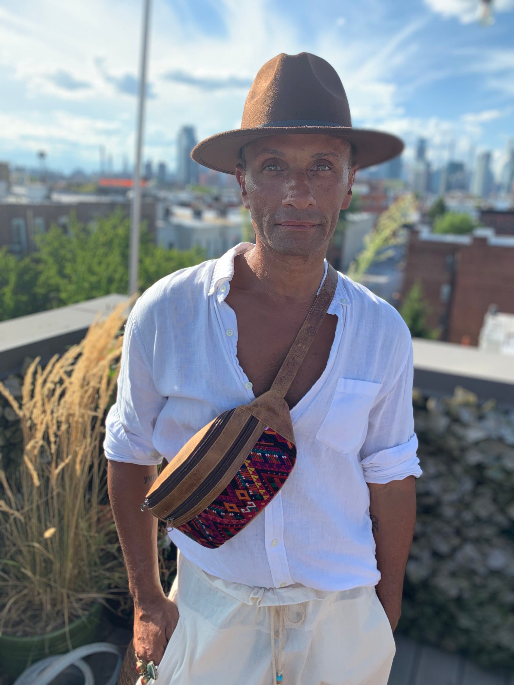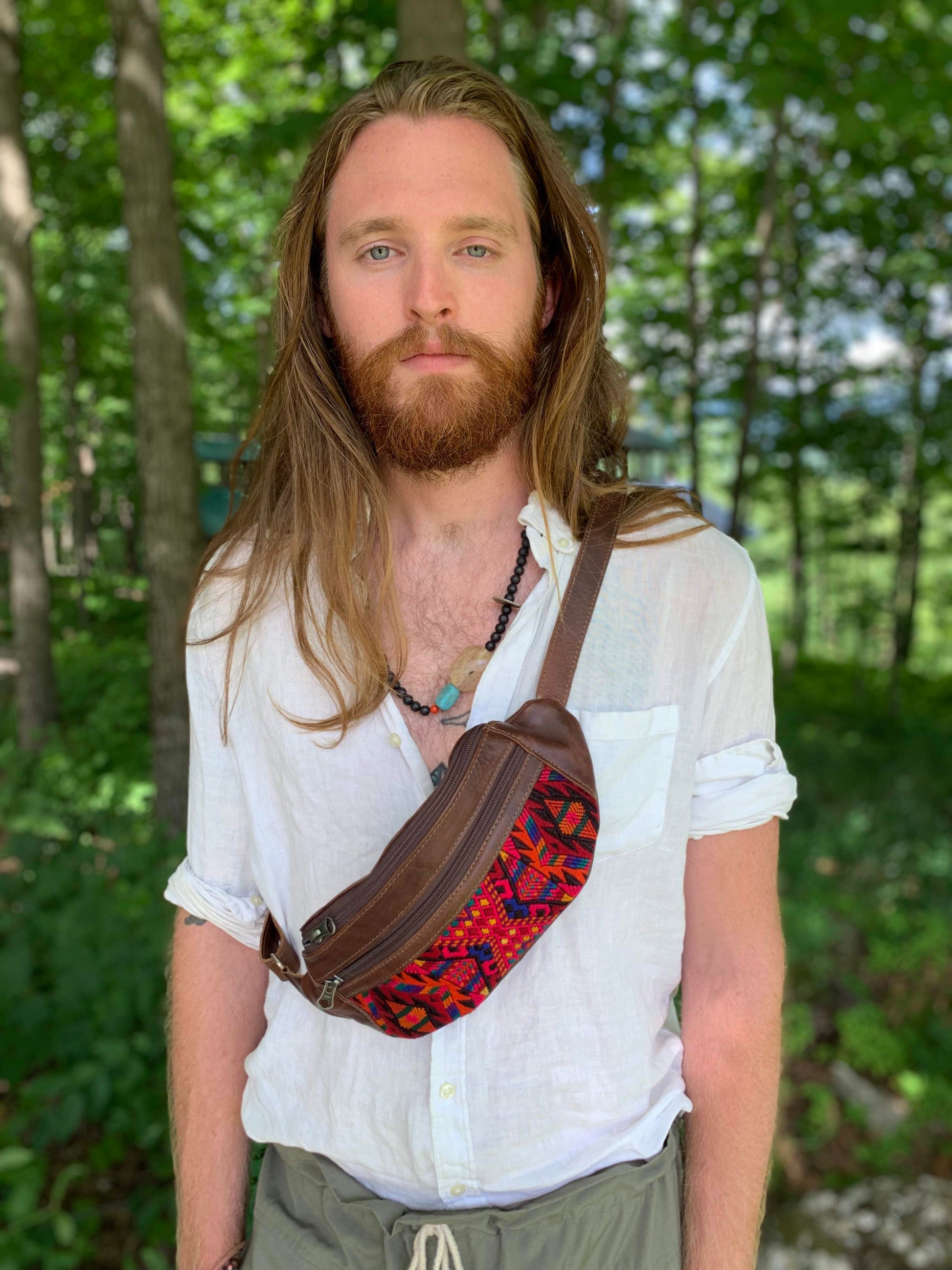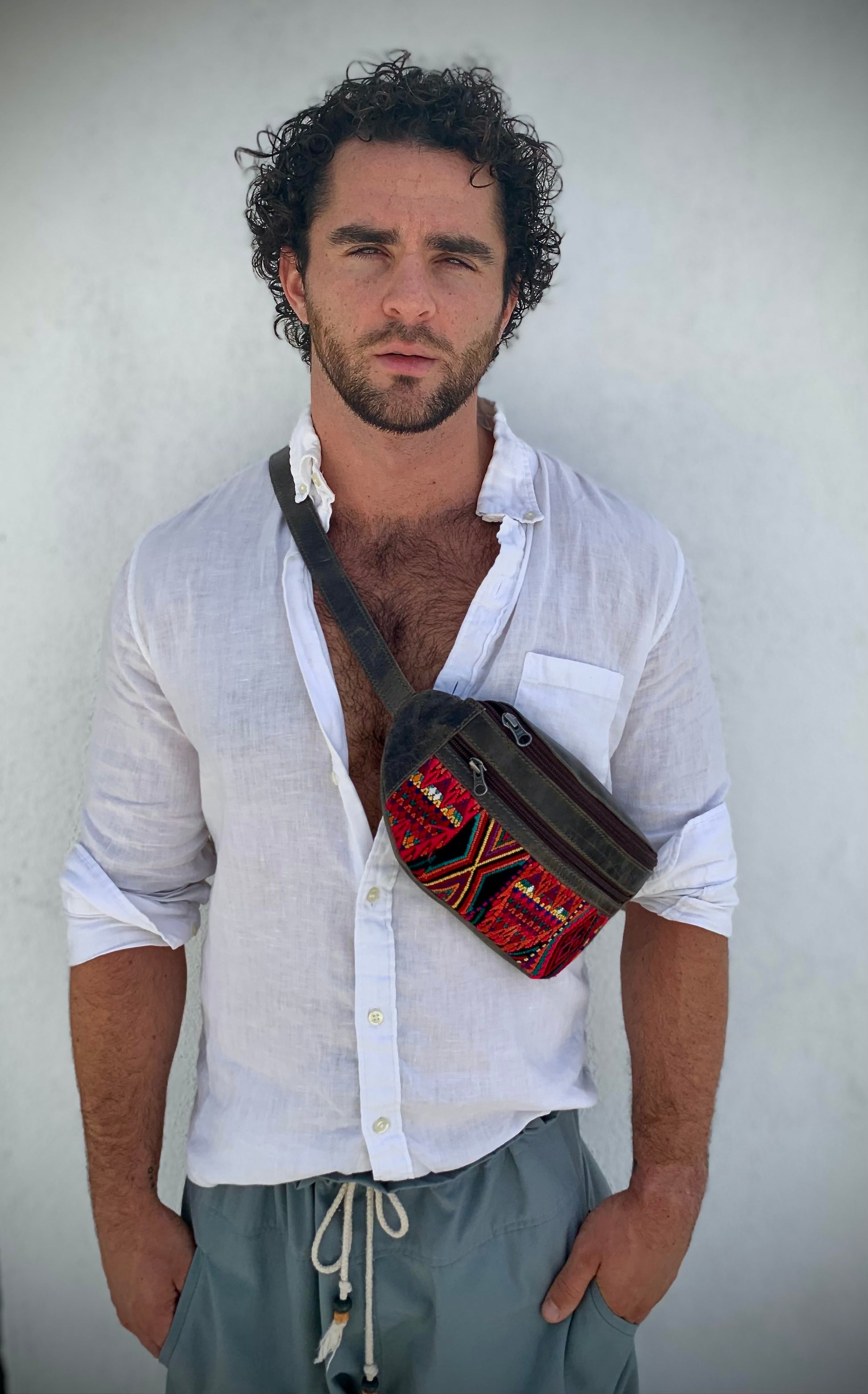 These bags are made in San Juan La Laguna by Manuela who is part of a women's coop who are survivors of domestic abuse. They are made from cow leather from a local farm and leftover pieces of huipil for the ornate embroidery. The soft full grain leather is made with environmentally friendly methods using the entire cow and sustainable tanning methods which only gets better with age.